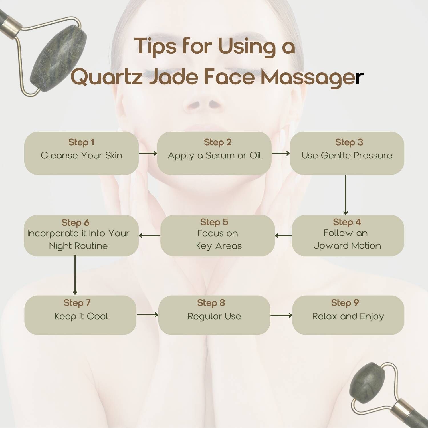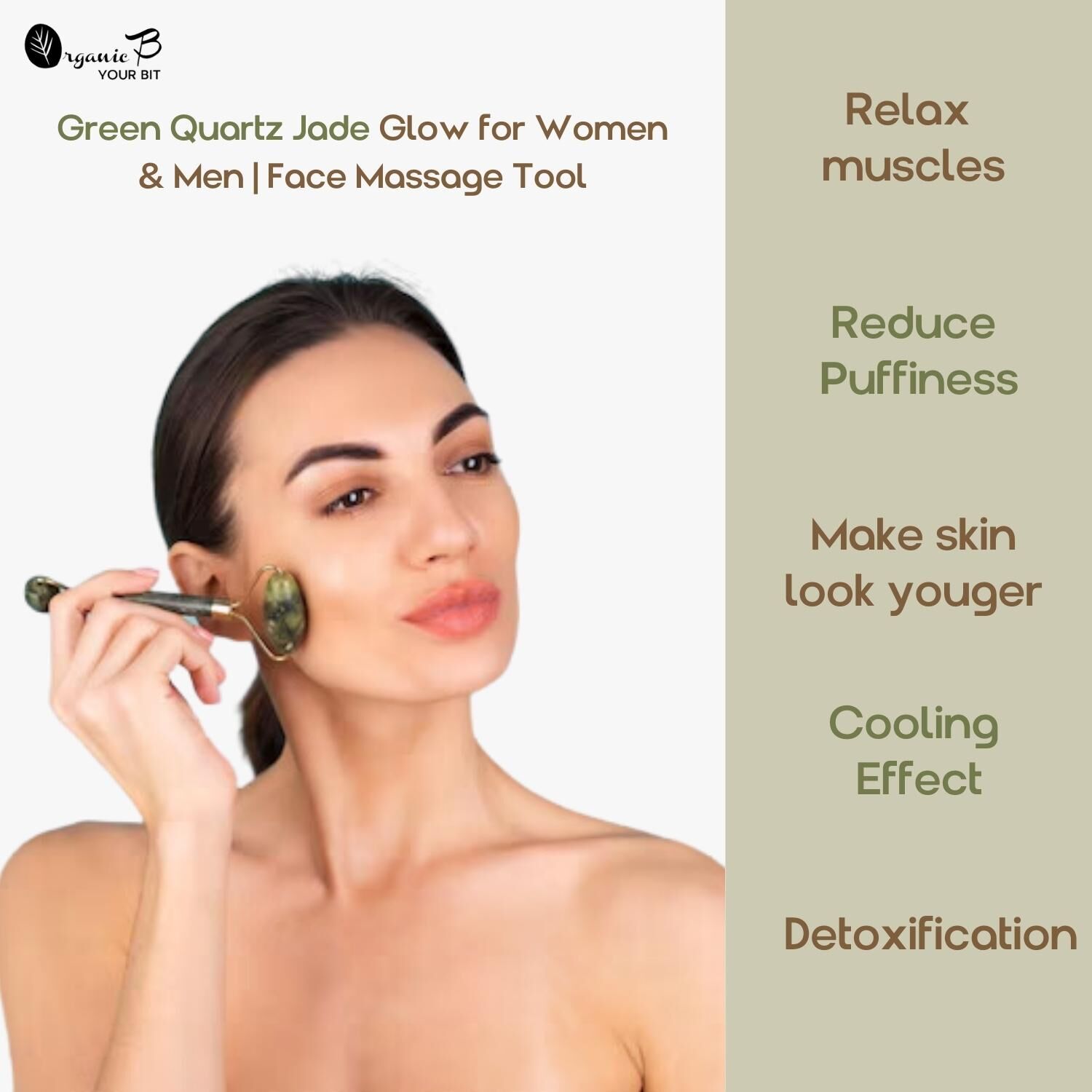 - The rolling action of the green quartz jade roller improves blood circulation, bringing a natural flush to the skin and contributing to a healthier complexion.