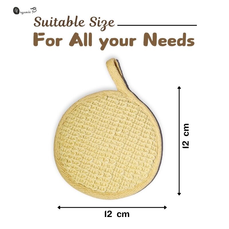 Get a better bath with the Organic B Natural Round Ramie Bath Loofah Scrubber. Made from high-quality ramie fibers, this eco-friendly bath glove offers gentle exfoliation, effectively removing dead skin while refreshing your body. Its cushioned texture ensures a comfortable grip and the convenient back strap makes it easy to use, even when wet. Perfect for all skin types, including sensitive skin, this natural glove is ideal for both men and women. Upgrade your skincare routine with this luxurious, spa-like experience for smoother, healthier skin.