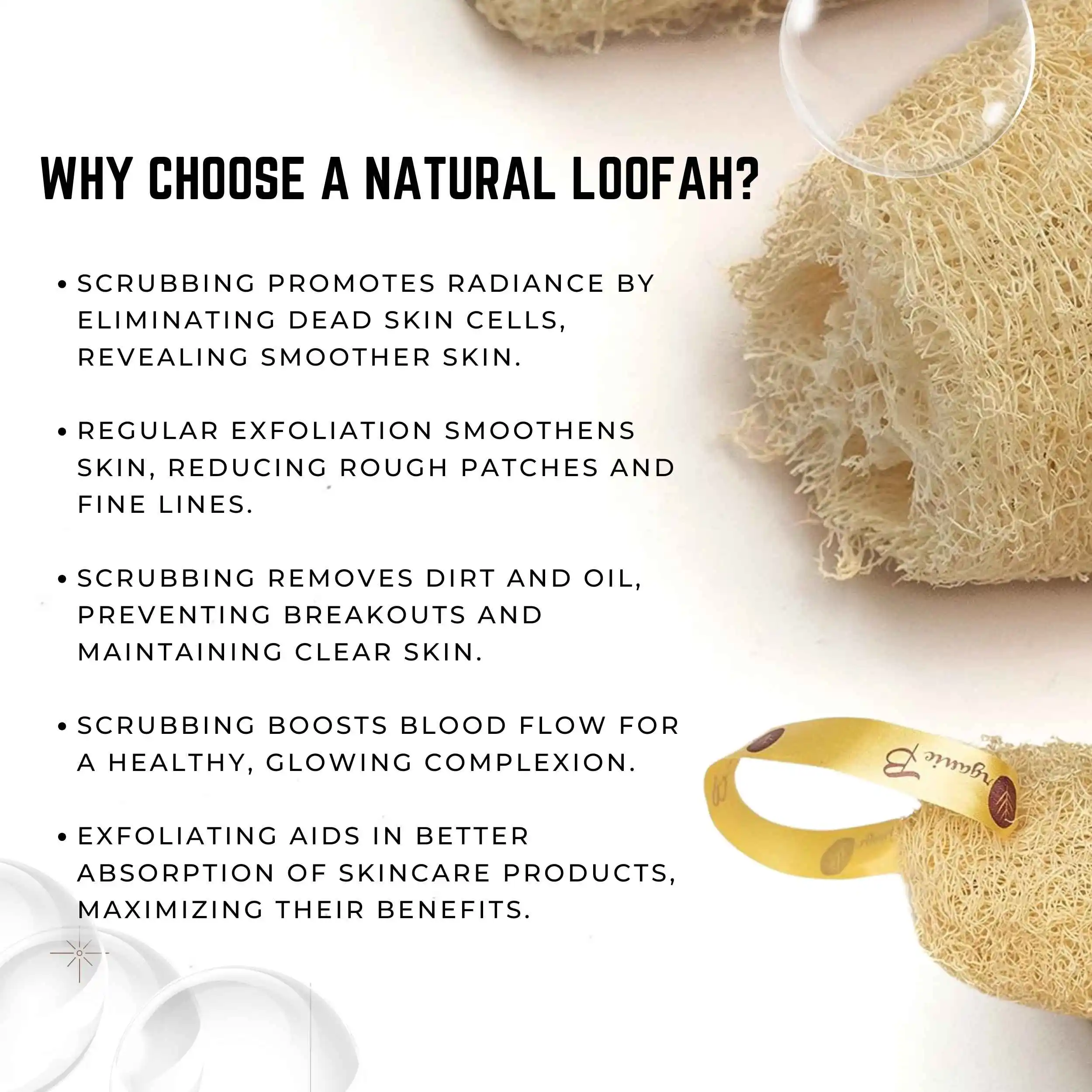 - The porous structure of the loofah fibers allows for deep cleansing, helping to remove impurities, dirt, and excess oil from the skin.
