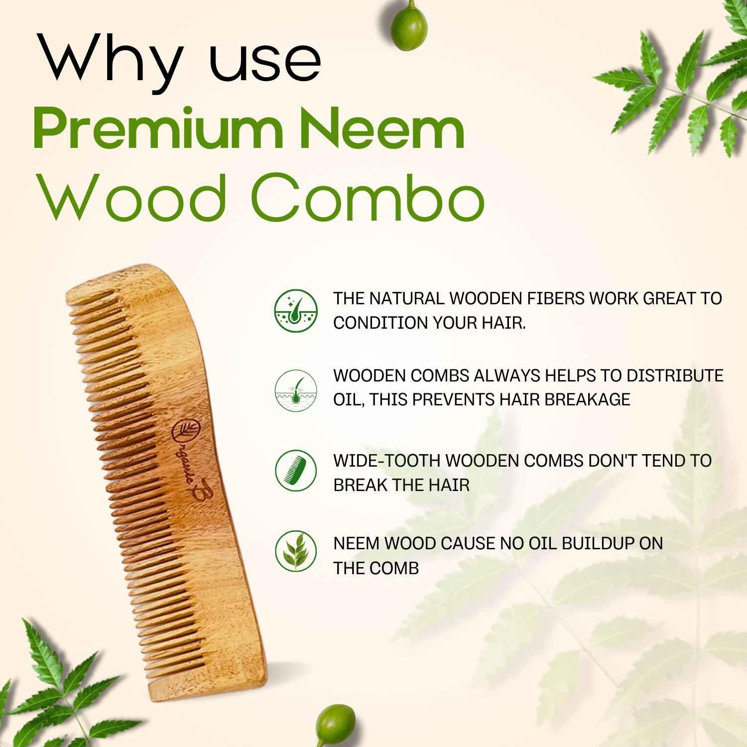 - Set Content: Full-Size Pure Neem Comb
