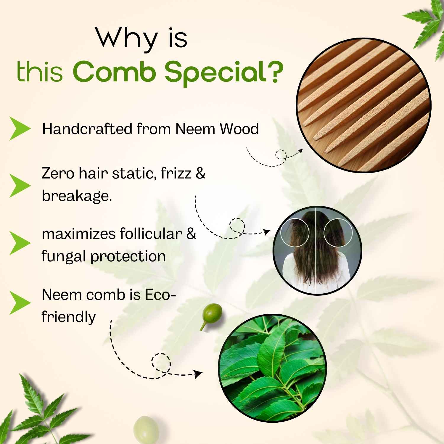 - Beyond styling, our Pure Neem Comb nurtures your scalp, fostering a healthier environment for hair growth.