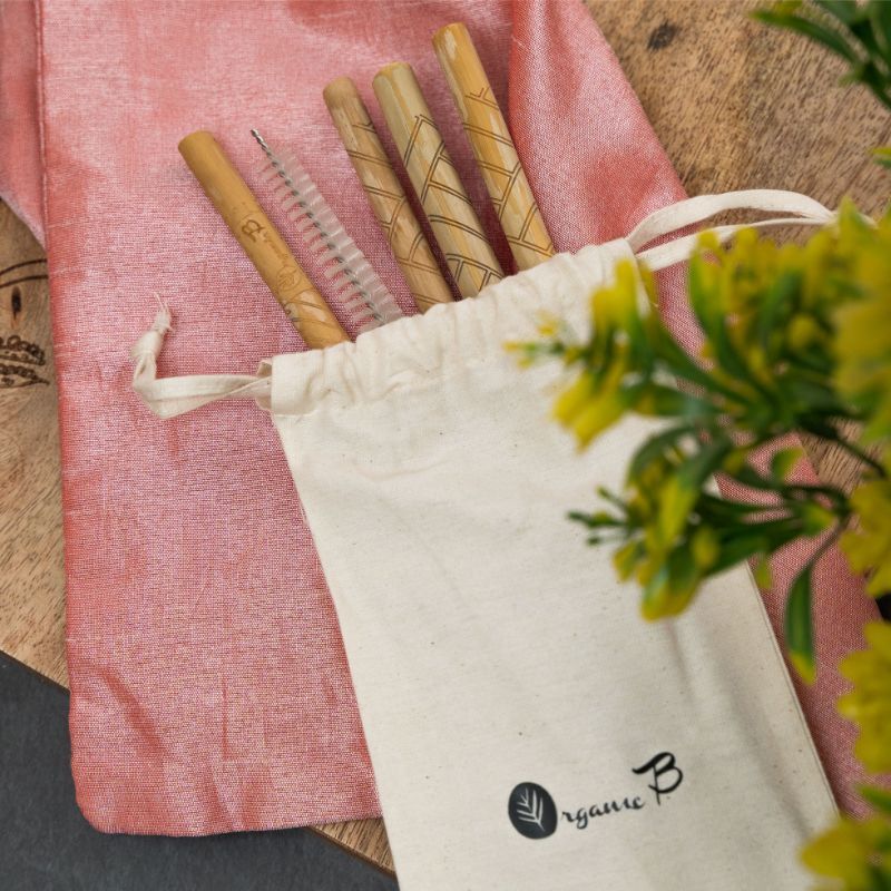 Organic B Reusable Bamboo Straw Set with Cleaner (Pack of 5)